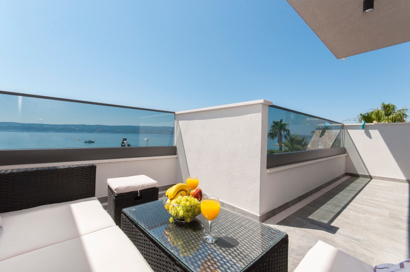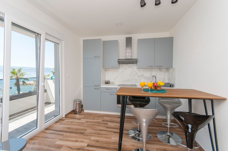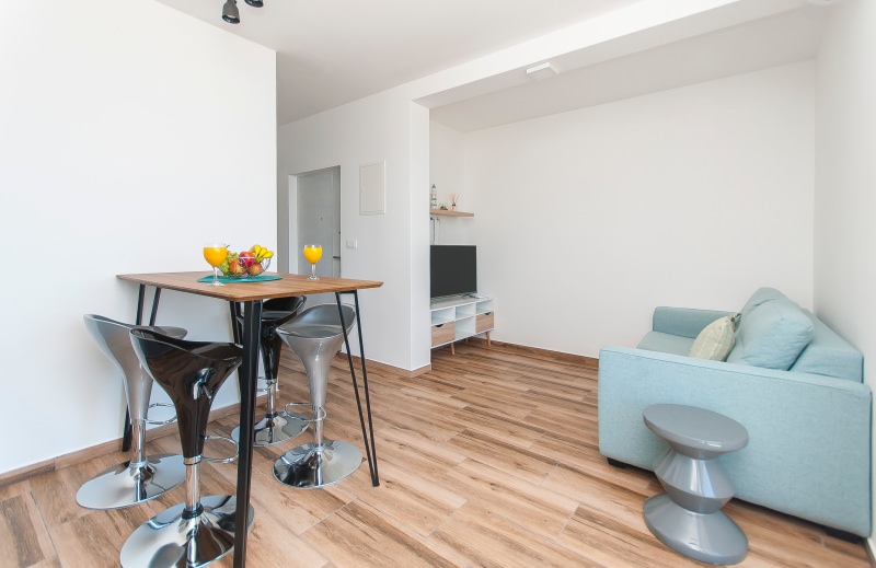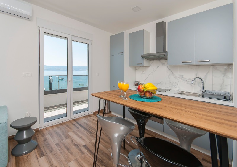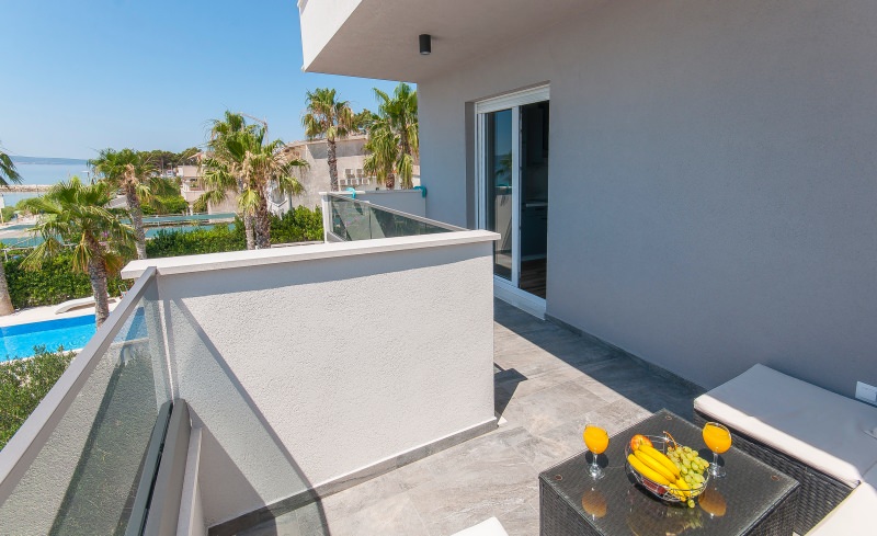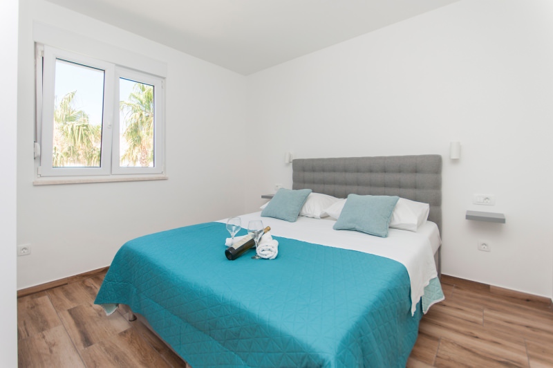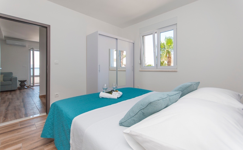 Apartman br.8 e za 2+2 osobe. Nalazi se na drugom katu prve kuće sa otvorenim pogledom na more. Veličine je 40 kvadrata. Apartman sadrži wc, veliki balkon, kuhinju, televiziju, satelitsku, klima uređaj, wireless internet, parkirno mjesto. U njemu je dozvoljeno pušenje.