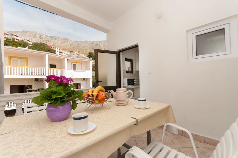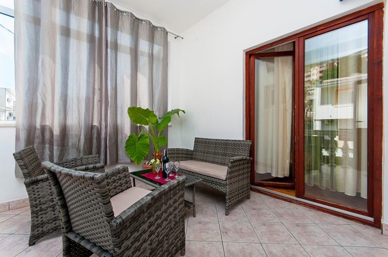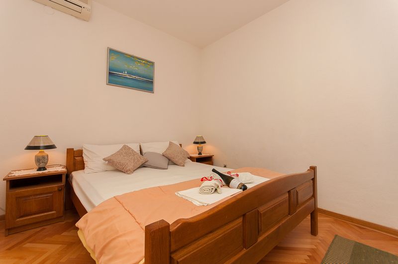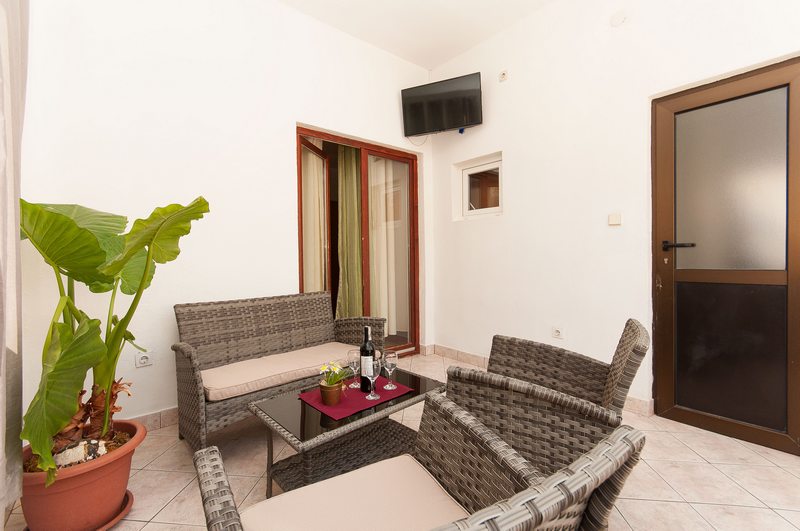 Apartments no.1 and no.2 can accommodate up to 4 persons with optional extra bed and are located on the first floor at the north side of the house. There are 2 rooms, 2 bathrooms, big kitchen and two big terraces. 65 square meters in size, apartment has parking space, terrace, 2 air conditioners, satellite TV, wireless internet, bathroom and a garden arrangement on the balcony. Smoking is allowed, pets are not allowed.